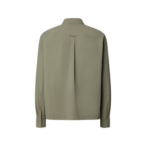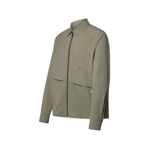 This khaki long-sleeved zip-up shirt draws on the Spring-Summer 2026 show’s chic mountaineering theme with its light technical fabric and practical details. Two asymmetrically placed zippered pockets add a bold, contemporary accent to the front, while tone-on-tone signature embroidery adorns the chest pocket. This piece be styled like a regular shirt or as an overshirt layered over a T-shirt.