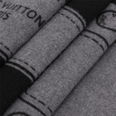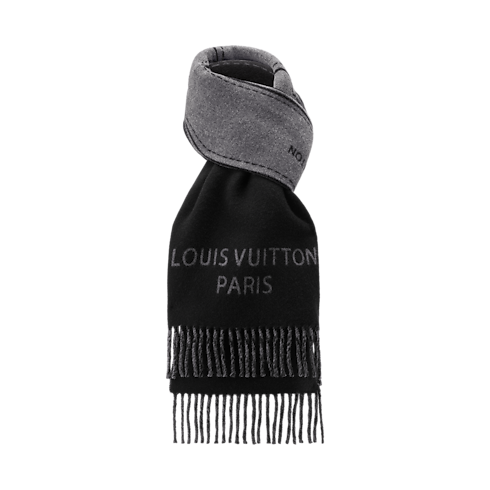 Crafted in Italy, the generously sized Handle scarf is designed with a large, jacquard interpretation of a Louis Vuitton trunk handle. The dazzling illustration and the "Louis Vuitton Paris" signature, both in grey, create a clean contrast with the black background, and twisted fringes add to the dramatic appeal.