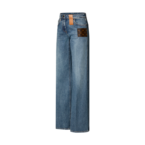 A signature spin on an enduring staple: These jeans flatter the figure in a high-waisted boot cut that elongates the silhouette, crafted from thick organic denim in a timeless shade for casual everyday styling. A jewel button adds a chic detail, while leather and Monogram patches complete the look with a contemporary House touch.
