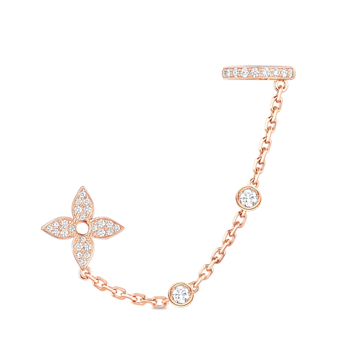 Cast from 18-karat pink gold, the Idylle Blossom Mono Chain Earrings add an on-trend edge to any look. The Monogram Flower stud and ear clips, both encrusted with diamond pavé, are connected by a delicate chain embellished with two brilliant-cut stones for even more eye-catching sparkle. Easy to wear and pair with other jewels from the collection.