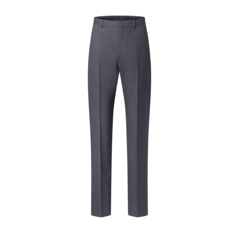 These chic tailored pants are crafted from a blend of wool, cotton and silk for superior lightness and breathability during the warmer months. The navy blue fabric is adorned with an LV Interlocked jacquard motif, adding a graphic signature detail. A matching single-breasted jacket makes a sophisticated business suit.