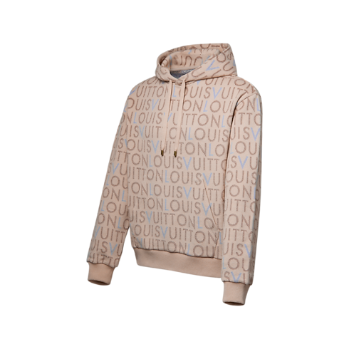 This graphic cotton hoodie is elevated with the Spring-Summer 2026 show’s LV Maze motif, inspired by hand-painted billboards in India. It features pale brown and blue Louis Vuitton lettering all over, which is integrated into the cream-colored jersey knit with a softly stippled effect. This piece brings a modern signature accent to casual silhouettes.
