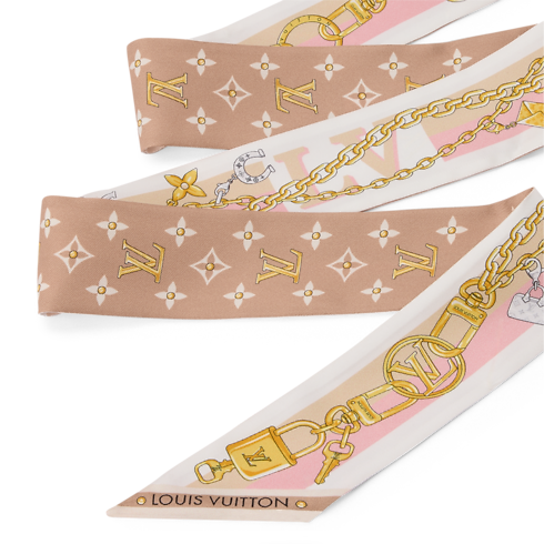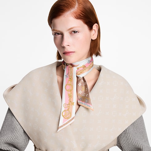 The elegant K Charms bandeau captures the spirit of Louis Vuitton in an enchanting, ultra-feminine design. Printed on pure silk, its pattern features a chain holding an array of symbolic charms evoking the Monogram signature and the House’s travel heritage. Ideal for everyday wear, this sophisticated bandeau adds a subtle touch of chic to any outfit.