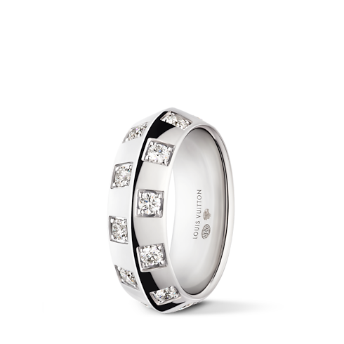 Le Damier de Louis Vuitton Large Ring, White Gold and Diamonds