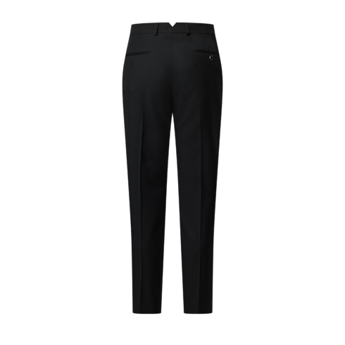 This black suit offers an essential timeless style for the office. It is tailored from a tone-on-tone wool jacquard adorned with an allover LV Blason motif that extends to the lining. The sharp silhouette features a single-breasted Pont Neuf jacket and elegant cigarette-fit pants. Finishing touches include an LV-embroidered tab on the right hip of the pants and signature labels.