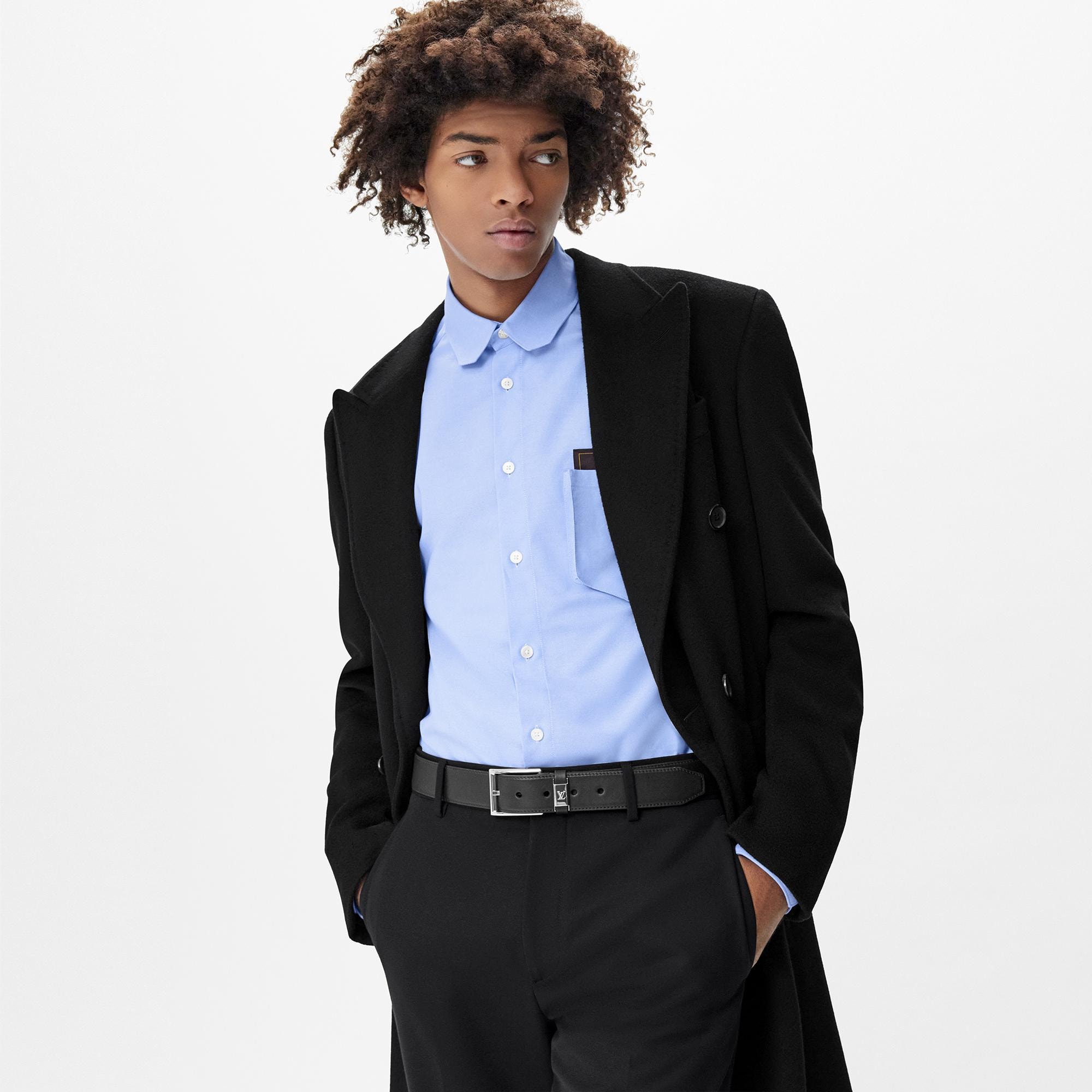 The LV City Pin 35mm Belt is a contemporary accessory that features a mix of materials. Its smooth leather strap has a sleek and minimalist design for styling with both business and formal looks. The belt's gleaming hardware buckle is engraved with the LV Initials in a subtle nod to the House.