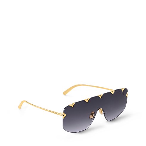 With their strikingly original style, the LV Crown mask sunglasses make a bold statement. Their oversized single lens is adorned with Monogram Flowers, delicately placed across the top for a refined heritage touch. And the slim gold-toned metal frame is sturdy but light on the face. These are fashion-forward sunglasses that dare to be different.