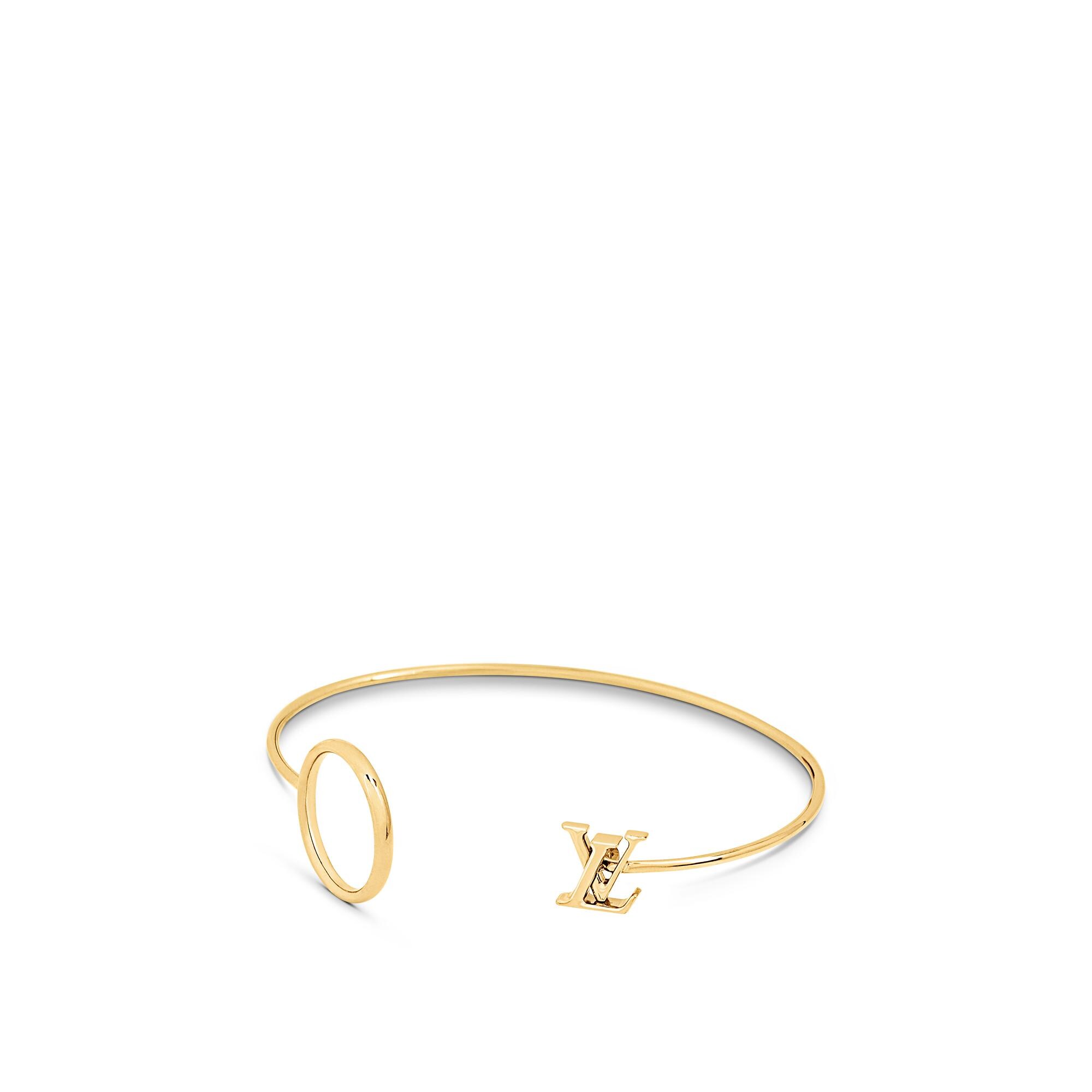 The LV Eclipse Bracelet has a contemporary feel that puts a new spin on a beloved House signature. LV Initials are showcased within a ring accent situated at the centre of the gleaming metal bangle. This elegant piece is part of a capsule collection introduced for Fall-Winter 2022 that celebrates timeless jewellery.