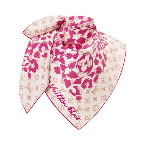 The elegant, on-trend design of the LV Safari square offers an exotic-chic reinterpretation of a historic House emblem. Crafted in sumptuous silk, it features an eye-catching leopard print made up of Monogram Flowers and Initials. For an extra House touch, a classic Monogram border is accented with a Louis Vuitton Paris signature in a distinctive hand-written style.