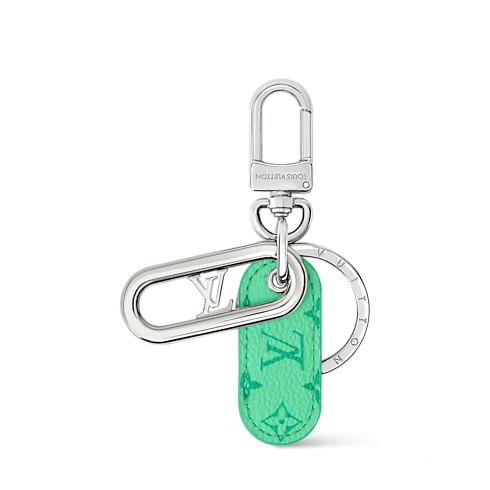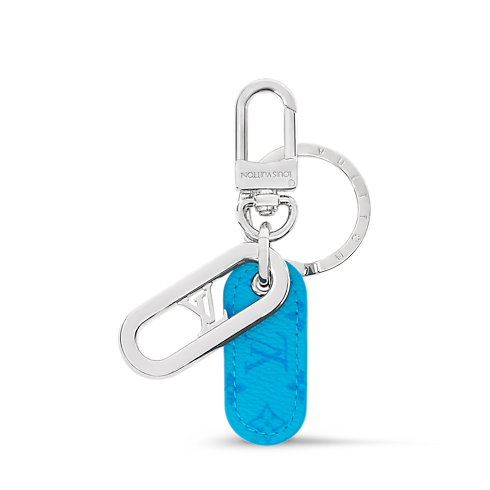 Animating the timeless LV Signature into the seasonal taigarama colors. It features an LV link charm in silver color polished hardware and a contrasting plate crafted from Monogram canvas on one side and plain leather on the reverse. Its dual functionality makes this accessory a versatile option.