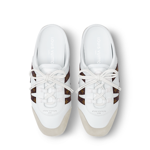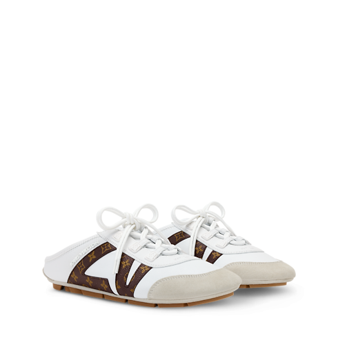 The LV Sneakerina open-back sneaker ballerina brings a fresh twist to the LV Sneakerina line. The upper is made of exceptionally soft napa lambskin, with a dynamic LV signature in Monogram canvas on the side. This easy-on, easy-off style has a sacchetto construction and an injected TPU outsole for optimum suppleness and lightness.