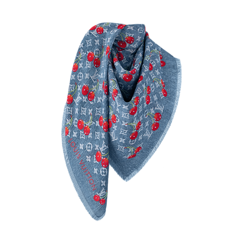 A standout in the new re-edition of the exclusive Louis Vuitton x Murakami collection, the LV x TM Denim Cerise shawl reinterprets a House icon with the acclaimed Japanese artist’s unique, captivating aesthetic. Crafted in soft, warm wool with an on-trend denim look, it features the emblematic Monogram pattern overlaid with an array of colorful Murakami-style cherries. A versatile, comfortable shawl that makes a playful yet elegant statement.