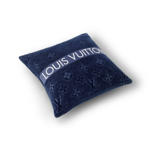 The LVacation beach pillow is ready for summer adventures. Created using a unique 3D jacquard technique, one side of the cover has a velvety texture, while the other has a spongey feel. The Louis Vuitton signature appears across the center of the pillow on a contrasting jacquard ribbon.