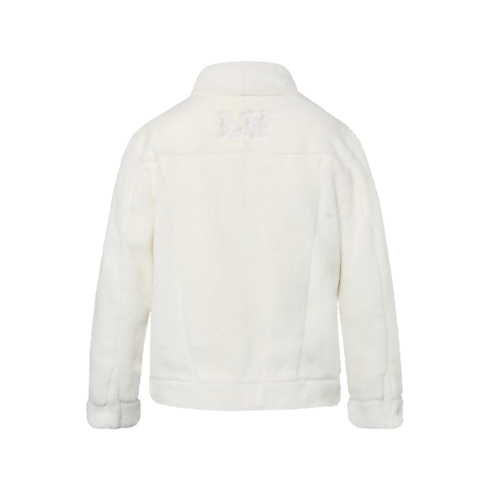 This exclusive white mink jacket from the FW24 Show spotlights the creative exchange between the collection’s Western inspirations and the Louis Vuitton savoir-faire. Cut with a classic denim trucker silhouette, the soft, deep fur is embellished with turquoise buttons and a hand-embroidered LV signature in resin pearls across the back. This sophisticated piece elevates both casual and evening looks.
