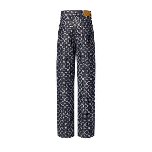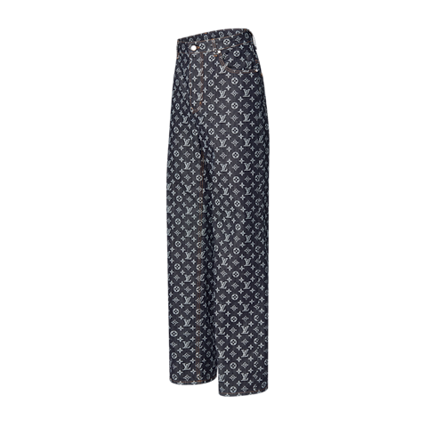 These dark indigo denim skate pants are crafted with a contrasting allover Monogram motif for a bold graphic effect. They have a comfortable regular Fit, while a pearl-effect button and rivets lend a dandy twist. These pants can be paired with a matching denim jacket for a bold signature look.