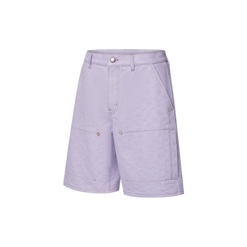 These denim workwear shorts are in a joyful lilac color that captures the cheerful mood of spring. They are richly crafted with a jacquard Monogram motif that has been overdyed for a softly textured look, while a pearly button and Monogram Flower rivets add chic finishing touches. Pair with a matching jacket for an eye-catching summery set.