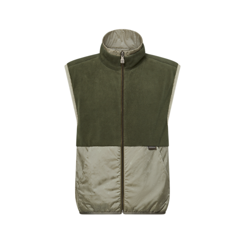 This reversible gilet in elegant green tones is crafted from technical fabric with an allover Monogram jacquard motif. A green fleece yoke adorns the upper body of one side, adding warmth and a sporty color-blocked effect. This is an easy piece to build into a layered spring look, adding a discreet signature accent and a refined twist to this collection’s soft neutral hues.
