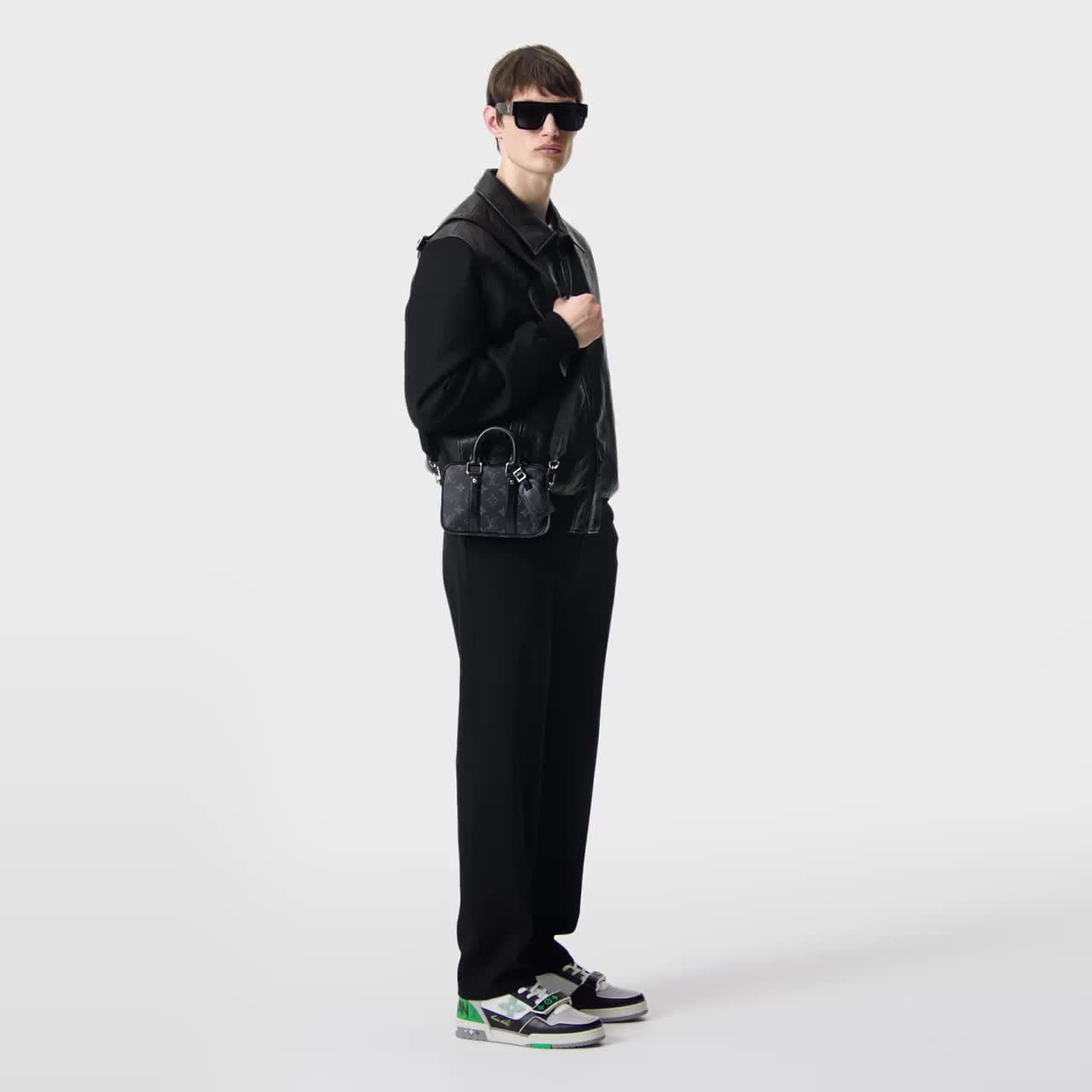 The Nano Porte Documents Voyage bag brings attitude to the business world. It features all the details of the traditionally sized original: zip closure, double handle and the removable and adjustable strap that enables convenient shoulder and cross-body carry. The main compartment is big enough for a phone and wallet.