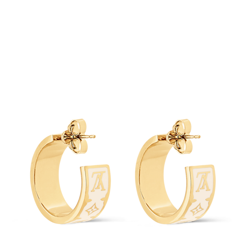 The finely crafted Nanogram Enamel earrings offer a fresh variation on a historic House signature. The famous Monogram Flowers and Initials are delicately engraved on hoops of gold-tone metal. With their feminine style and contemporary appeal, these eye-catching earrings add a touch of finesse to any outfit – perfect for both daytime and evening occasions.