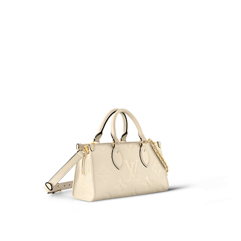 Introducing the OnTheGo East West tote, interpreted in a beautifully proportioned east-west silhouette. Made from Monogram Empreinte leather embossed with a tonal Giant Monogram motif, this compact model boasts a well-organized interior for daily essentials. The bag lends itself to a variety of carry styles, thanks to its two articulated top handles and a removable chain-and-leather strap.