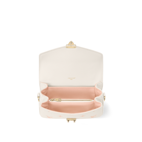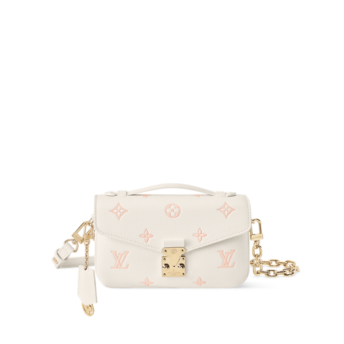 Reimagined in a Milky White and Peach bi-color palette, this edition of the Pochette Métis East West is a sleek choice for the weekend. It is crafted from signature Monogram Empreinte leather elevated with light gold-toned hardware, including the House’s iconic S-lock. There are three compartments to store belongings, plus a zipped pocket on the outside.