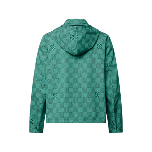 This technical hooded windbreaker blends function with style for this collection’s seabound adventures. It is elevated with an allover Damier Monogram print, featuring micro Monogram details in alternating squares and scattered ‘Marque L.Vuitton Déposée’ signatures. With its sophisticated blue-green tones, this graphic piece brings a fresh nautical vibe to a casual look.