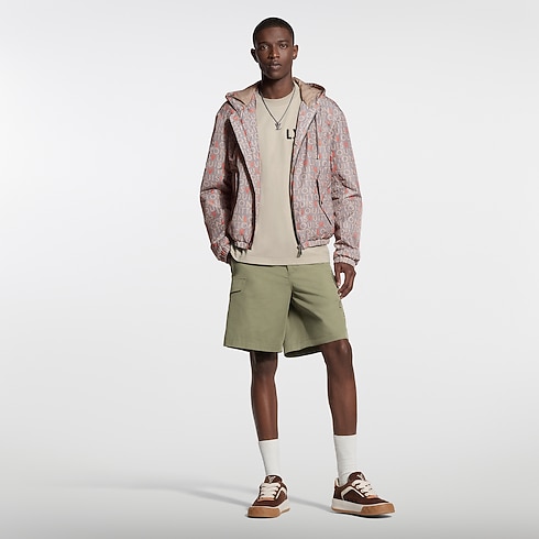 This technical windbreaker is adorned with the Spring-Summer 2026 show’s graphic LV Maze motif, inspired by hand-painted lettering on Indian billboards. It features Louis Vuitton signatures in elegant gray tones with the L and V letters picked out in vibrant red. This lightly padded layer combines functionality with style, bringing a modern signature accent to a look.
