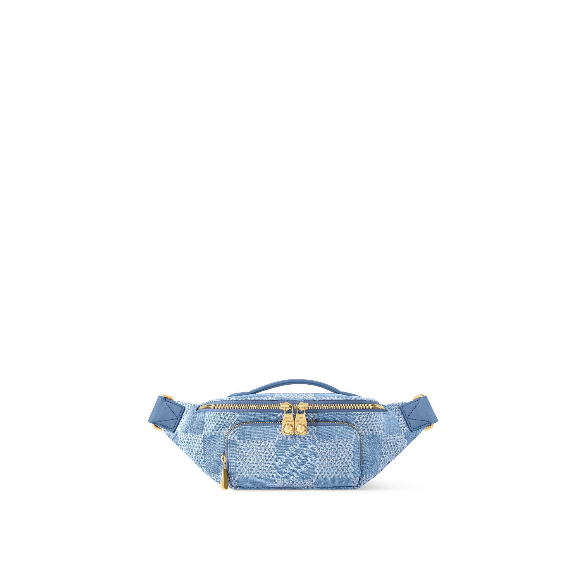 The Rush Bumbag is made from LV Blason Denim, a black-washed denim embroidered with colorful LV Initials. Practical and body-friendly, it boasts a front zipped pocket for easy access to a phone or cards. The belt adapts to waist, over-the-shoulder, or cross-body wear. It’s signed with the earphones charm, created by Pharrell Williams for this line.