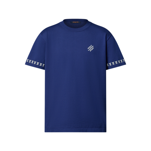 This smart white short-sleeved crewneck in a fine organic cotton knit is crafted with delicate contrasting jacquard signatures. These include a discreet ‘Marque L.Vuitton déposée’ on the chest and a band of LVs around the cuffs creating a neat graphic effect. This versatile piece brings a distinguished touch to everyday looks.