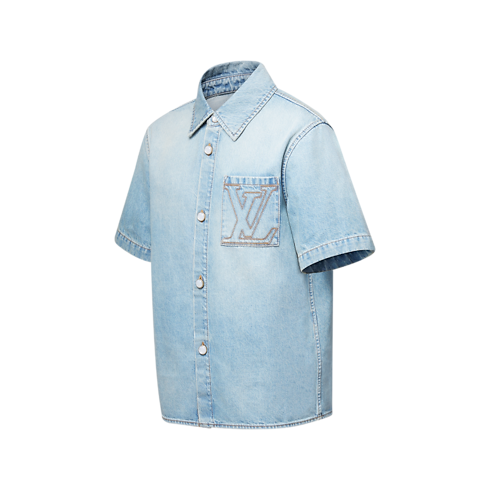 This short-sleeved denim shirt is a wardrobe essential enhanced with the Louis Vuitton savoir-faire. Premium stonewashed Japanese denim is finished with tobacco-toned topstitching with an embroidered LV signature on the chest pocket, a nubuck LV patch on the back and pearl-effect buttons. This effortless piece is easy to mix and match with everyday looks.