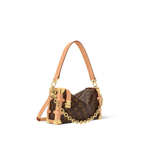 The Side Trunk handbag is reimagined in an elongated East West profile, ideal for weekends in the city. It is crafted from signature Monogram canvas with elegant gold-toned hardware, which includes a plain chain, trunk-inspired corners and an iconic S-lock – paying tribute to traditional Louis Vuitton luggage. It is sized to fit daily essentials and can be worn multiple ways.