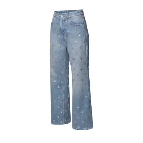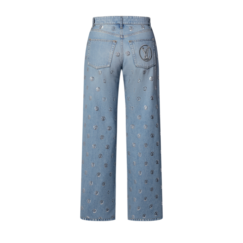 A statement spin on a staple style: these jeans are comfortable and flattering for versatile wear in a classic high-rise straight shape. LV Circles embroidered in shimmering metallic sequins add a playful allover signature, as well as a graphic cut-out button on the fastening and an oversized LV Circle on the back pocket.