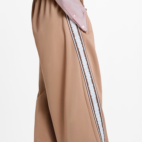 Playful detailing refreshes these staple jogging pants for chic, everyday styling. They are cut from a soft cotton blend in an ample wide fit trimmed with a drawstring waistband for casual comfort. The sides are embellished with diagonal striped bands embroidered with Louis Vuitton signatures in a nod to classic sporty codes.