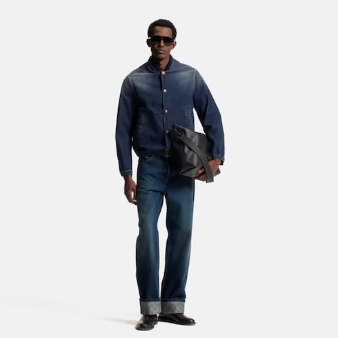 These deep indigo jeans are a casual wardrobe essential with an easy skate fit. A light wash gives them a gently broken-in character, while a tonal Monogram motif embellishes the turnups. Distinguished finishing touches include a nubuck Damier jacqueron and aged gold-toned hardware. A matching jacket makes a total look.