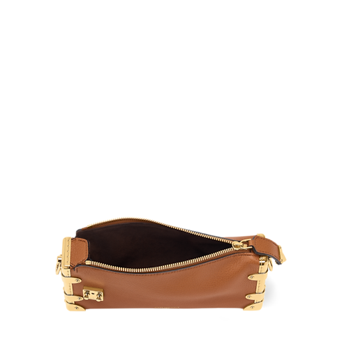 The Wigan collection presents this contemporary edition of the Slim Trunk in a versatile color palette. It is crafted from calfskin and embellished with gold-toned hardware, including trunk-inspired corners and a signature S-lock, both of which pay tribute to the House’s iconic travel heritage. The matching chain can be removed if desired.