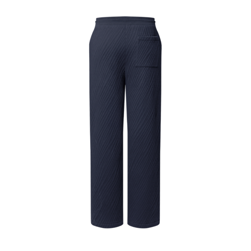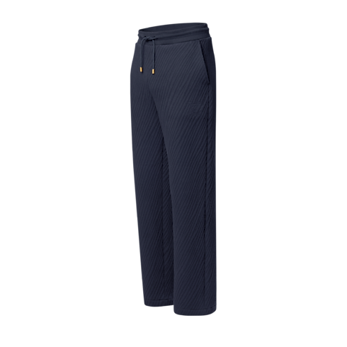 These cotton-blend jersey pants are elevated with a sophisticated jacquard knit, recreating the House’s iconic Epi motif with a textured diagonal relief effect incorporating an LV signature on the left leg. Their navy blue straight-leg silhouette features a comfortable ribbed drawstring waist with gold-toned metal cordon stoppers. A matching hoodie makes a sporty yet refined set.