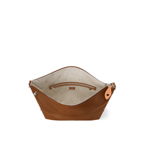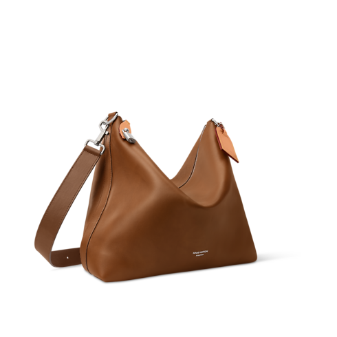 Crafted from supple, naturally tanned leather, the Vagabond Hobo offers comfort on the shoulder or cross-body with its adjustable, removable signature textile strap. LV Blason jacquard lines the interior, while silver-tone engraved hardware, a padlock and zipper, adds sophistication. A lighter leather name tag completes the design.