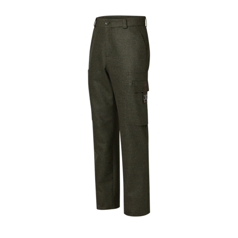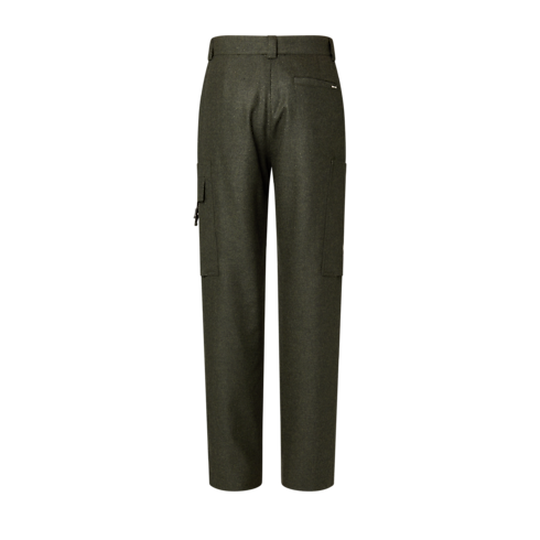 These timeless dark khaki cargo pants are a wardrobe essential that is both functional and smart. Crafted from technical wool flannel with handy cargo pockets on each leg hand, they are signed with an LV Plex snap on the left pocket. With their clean-cut silhouette, these pants complement casual autumn looks.