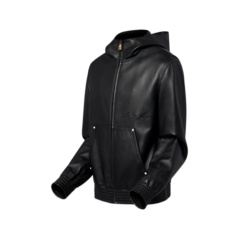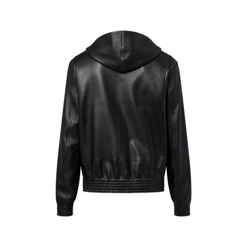 This sleek leather hoodie is crafted from luxuriously supple lightweight lambskin. It is signed with a discreet debossed Louis Vuitton on the left chest and a ‘Marque L.Vuitton déposée’ leather label under the hood. This contemporary piece with pearly rivets and a ruched leather hem elevates casual ensembles.