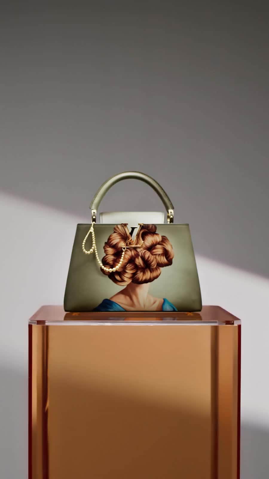 Hand-sprayed onto smooth leather, the gradated green background mirrors the original oeuvre to showcase the vibrant portrait, its details captured and reproduced in ultra-high definition using an innovative 3D printing technique, which was also employed to camouflage the iconic LV signature. “I wanted the bag to reflect the essence and character of my paintings. By combining various techniques and materials, like the hand-dyed leather and multilayered printing, the final effect is beautiful and sophisticated.” – Ewa Juszkiewicz