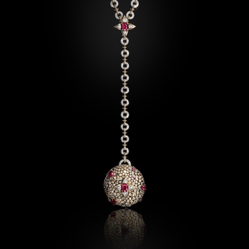 Emulating the contours of ornate imperial interiors, Splendeur masterfully reimagines floral woodwork in an ode to the iconic Monogram Flower. Set with a vivid display of over 110 rubies, the exquisite jewelry pieces boast a charismatic decadence — showcased by a spectacular setting, amongst the largest arrangement ever featured on one creation.