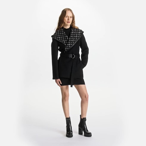 Short wrap pea coat yang cantik ini diperbarui untuk musim ini dengan warna segar dan dilengkapi dengan sabuk koleksi Louis Vuitton Paris untuk sentuhan kontemporer. Dengan campuran wool-silk ganda ini lembut, ringan dan hangat, serta hoodie tebal menambah kenyamanan. Lengkap dengan jacquard Monogram ikonik di bagian dalam.